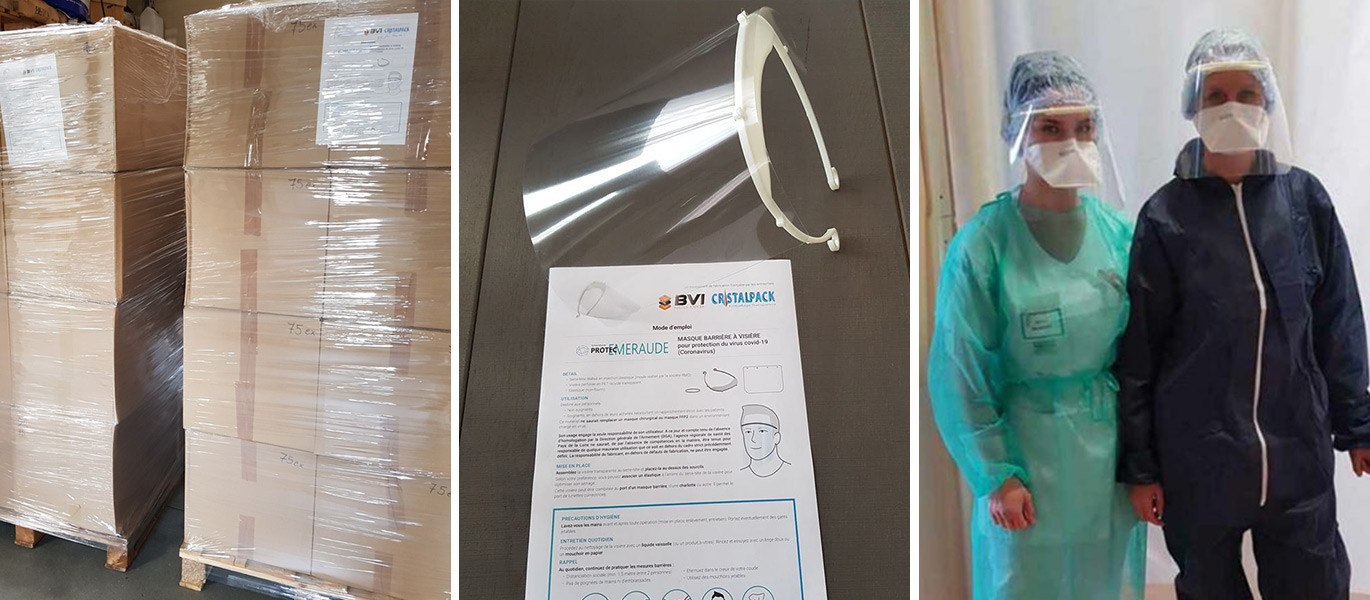 Ces visières, fruit d’une collaboration solidaire en CRISTALPACK et BVI Injection Plastique, sont un bel exemple de mobilisation citoyenne. Chacun a pu mettre à profit sa maîtrise du packaging en plastique et leurs unités de production pour faire face à cette crise sanitaire.